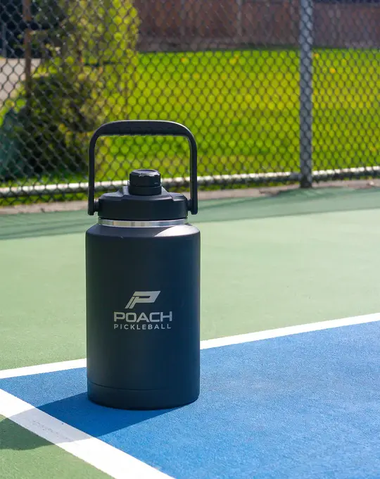 Built for athletes who demand peak performance, the Poach 128oz stainless steel water bottle keeps your drink ice cold so you stay refreshed on the court.
