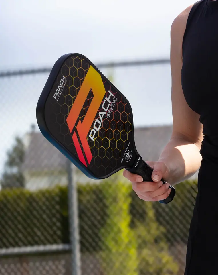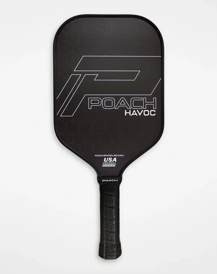 Designed for aggressive net play, the Havoc Power features an elongated shape for extended reach and a soft 16mm poly-core for controlled touch. Its layered fiberglass face delivers explosive power, while the long handle is perfect for two-handed backhands and wrist-generated strikes.